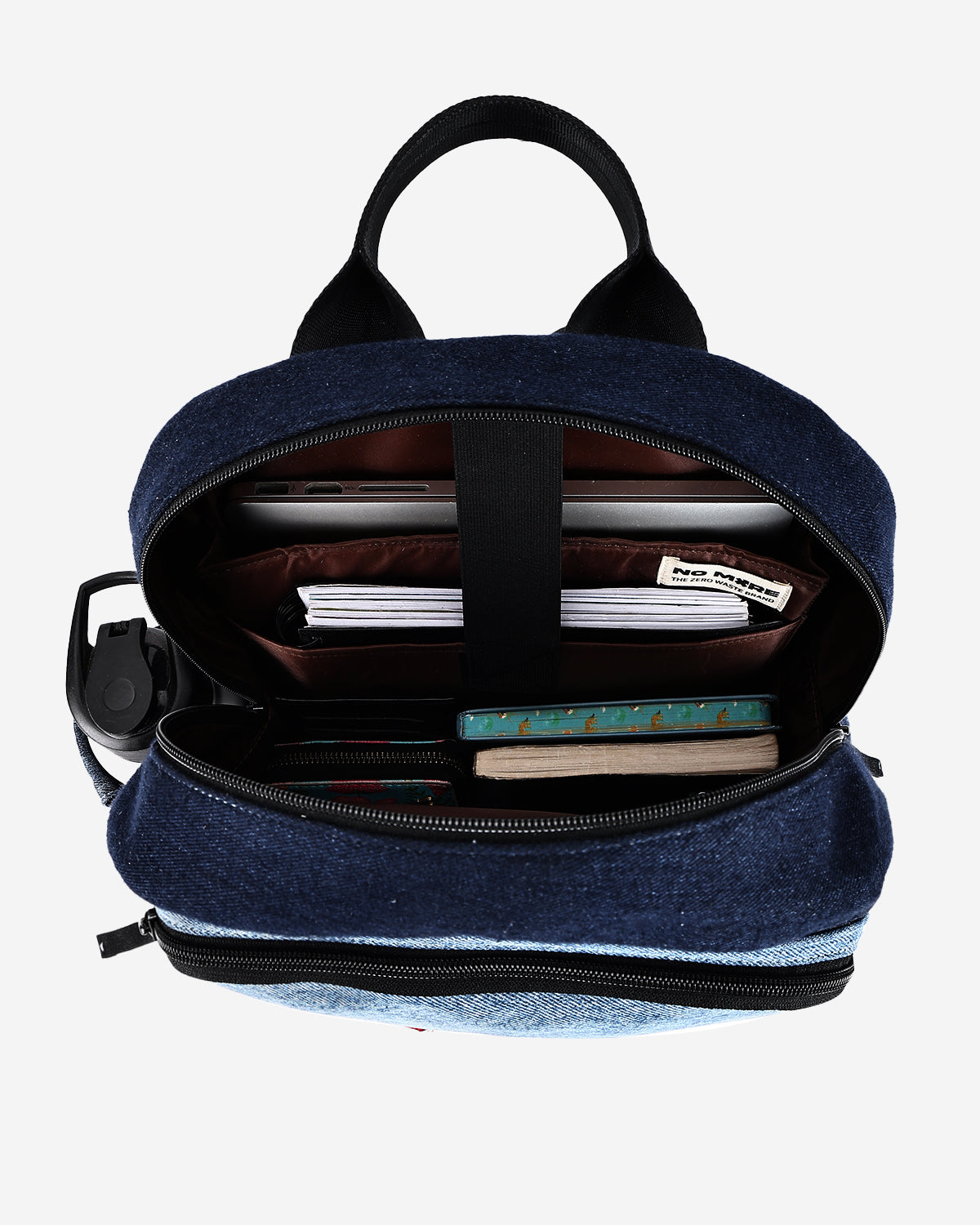 • نسيج الجسم الأساسي والبطانة الداخلية - يتم إعادة تدوير النسيج الرئيسي من الستائر التي تم جمعها من مجموعة الأقمشة مع قبيلة NO MORE وتم الحصول على البطانة من المخزون الميت الموجود في مستودع مصنع تصنيع الملابس.
