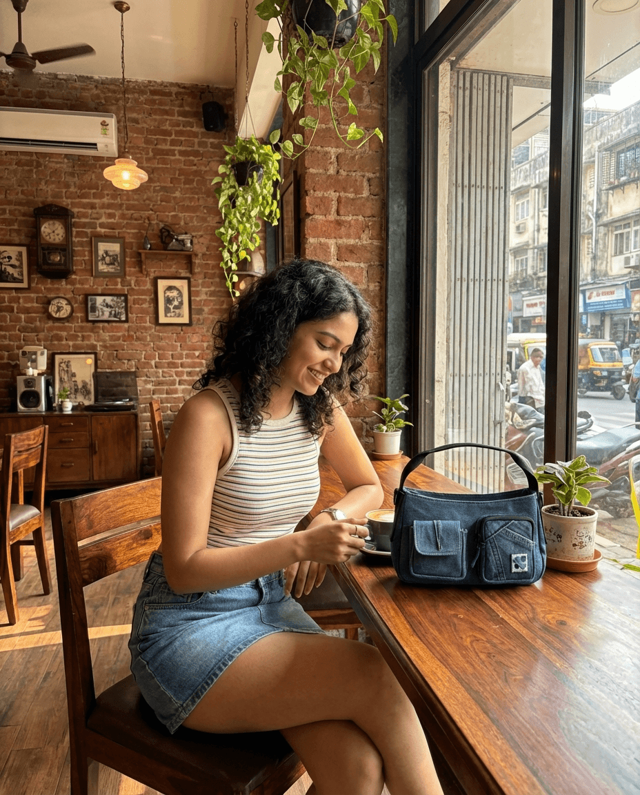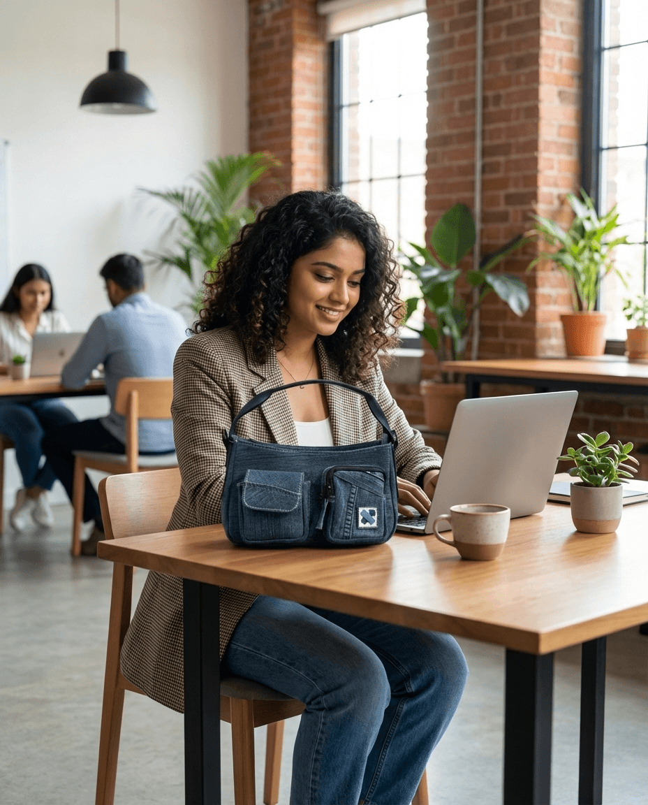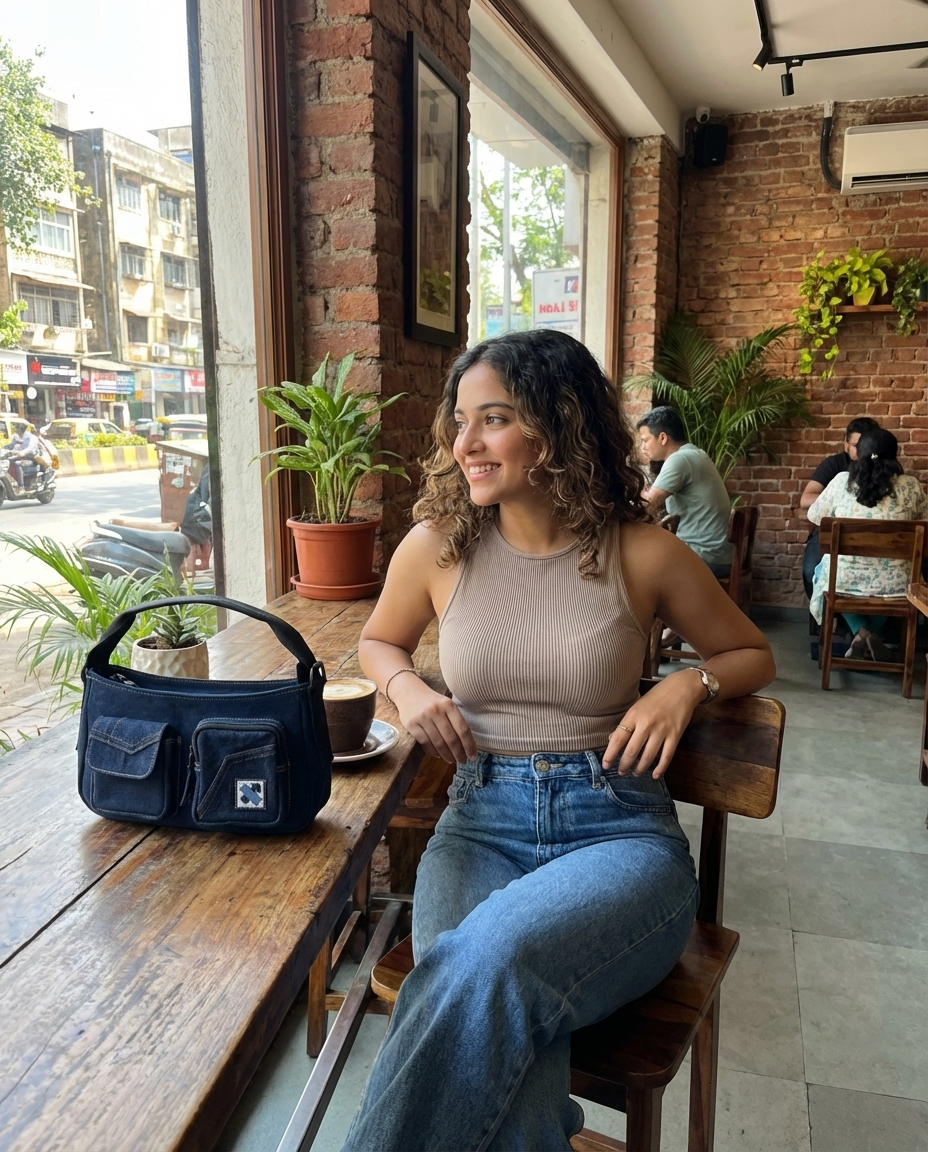 • Primary body fabric - Upcycled denim (cut and sorted), sourced from a recycling unit.