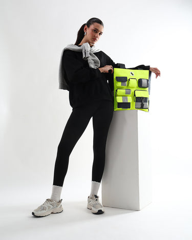 POCKET CLUSTER LAPTOP TOTE - Neon Yellow Strobe