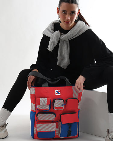 POCKET CLUSTER LAPTOP TOTE - Strobe Red Blue