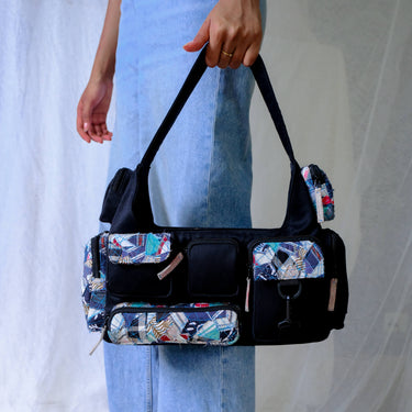 The cargo trend remains a fashion favorite, evolving from pure functionality to a hipster staple. Our Pocket Cluster Shoulder Bag seamlessly shifts from work to evening, featuring multiple pockets for style and practicality in one chic accessory.