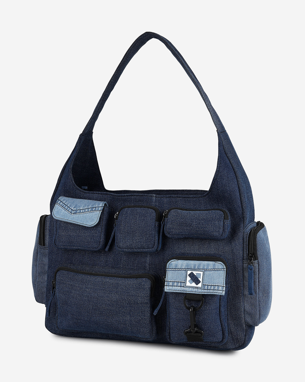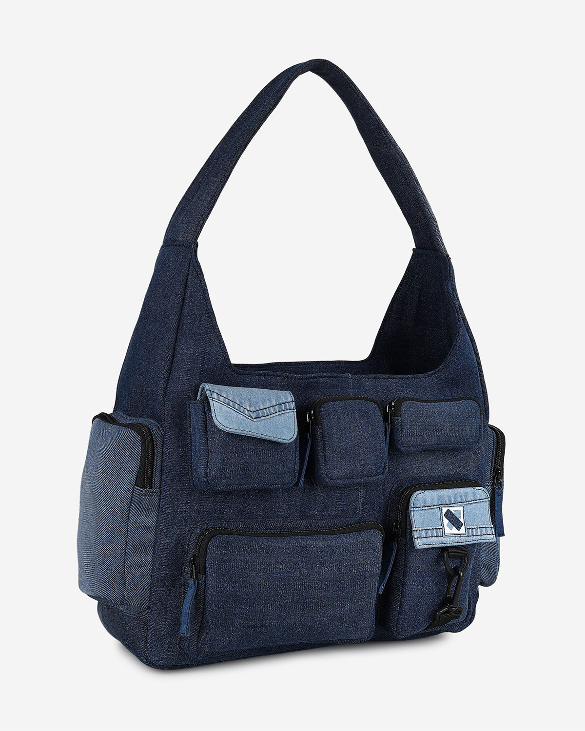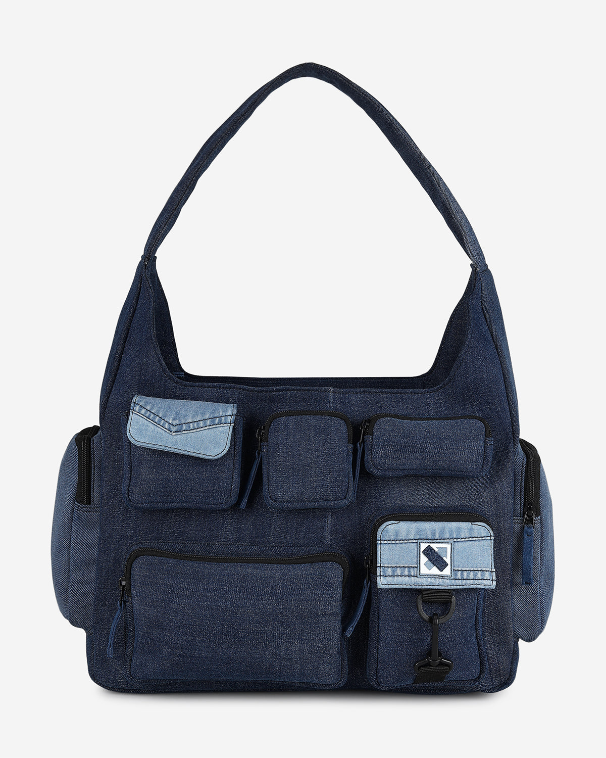 POCKET CLUSTER HOBO BAG - Blue Denim Mix