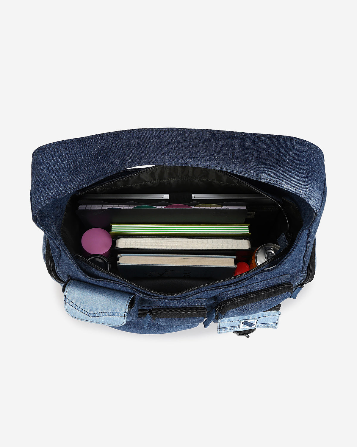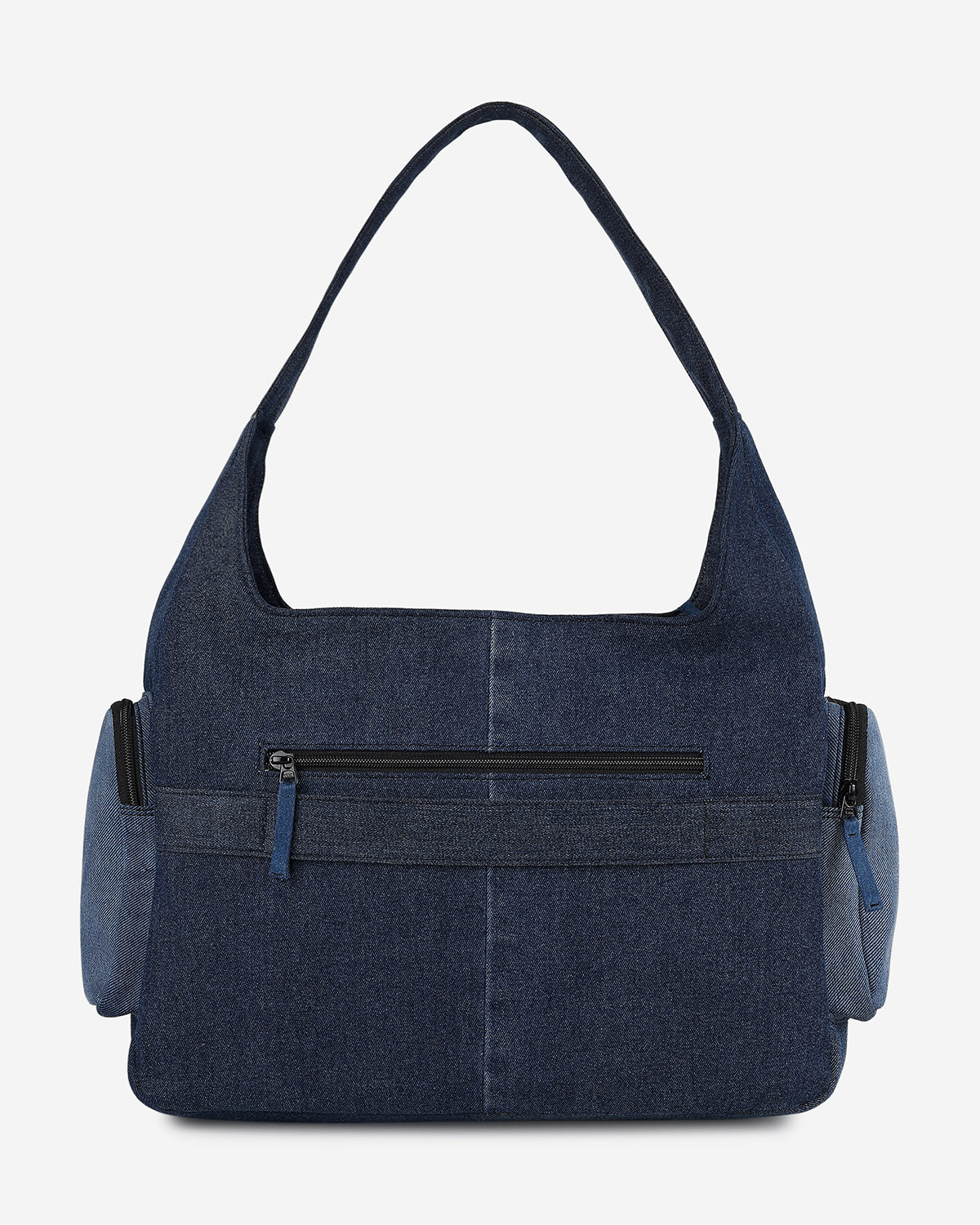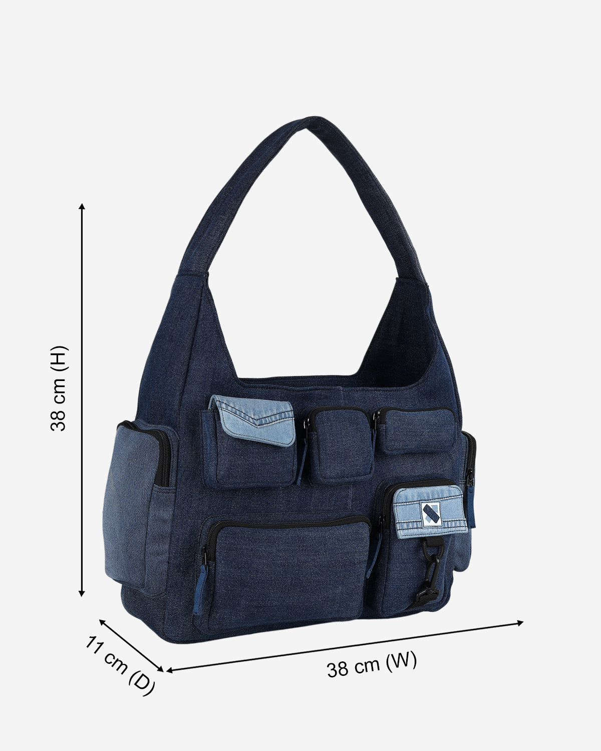 POCKET CLUSTER HOBO BAG - Blue Denim Mix