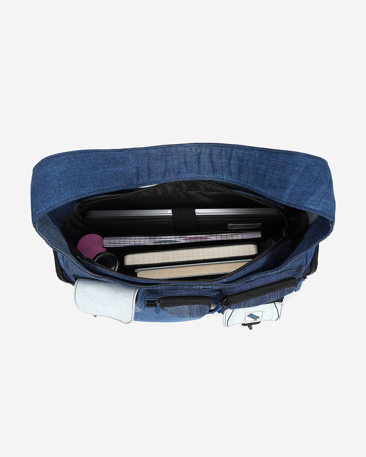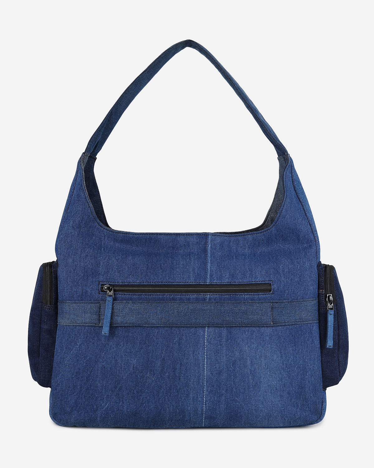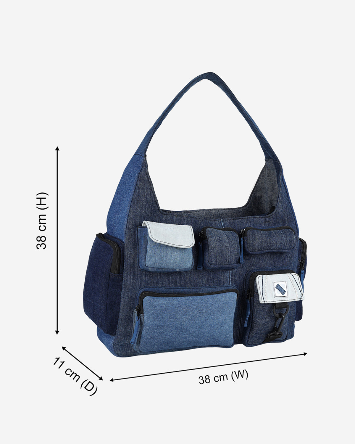 POCKET CLUSTER HOBO BAG - Multi Blue Denim Mix