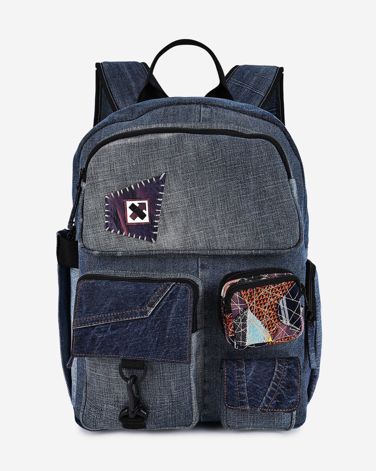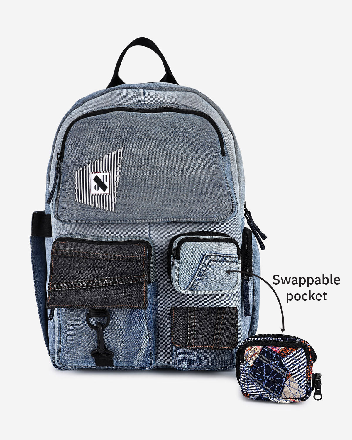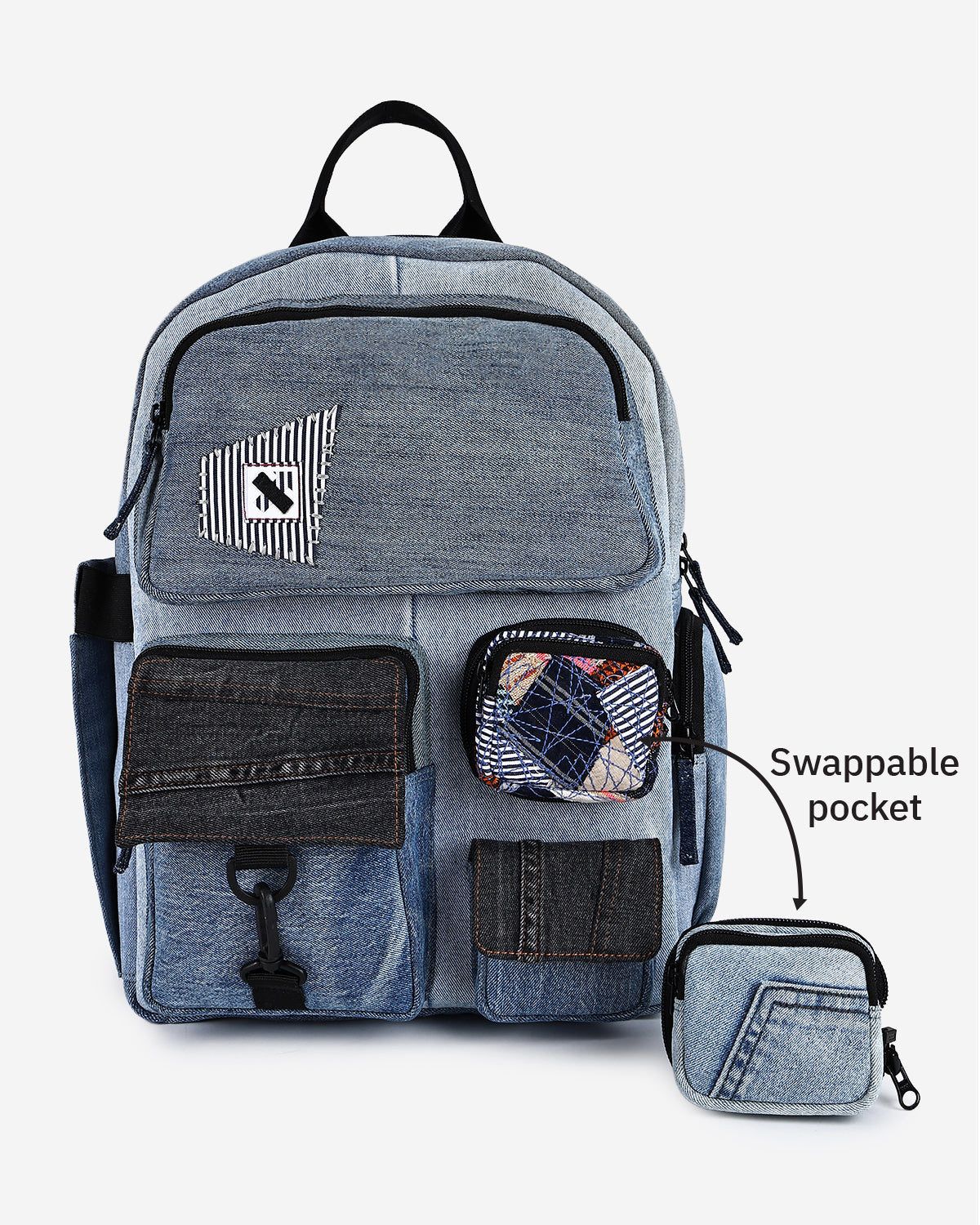 POCKET CLUSTER BACKPACK - Denim + Fabric Shreds - 10 Styles Available