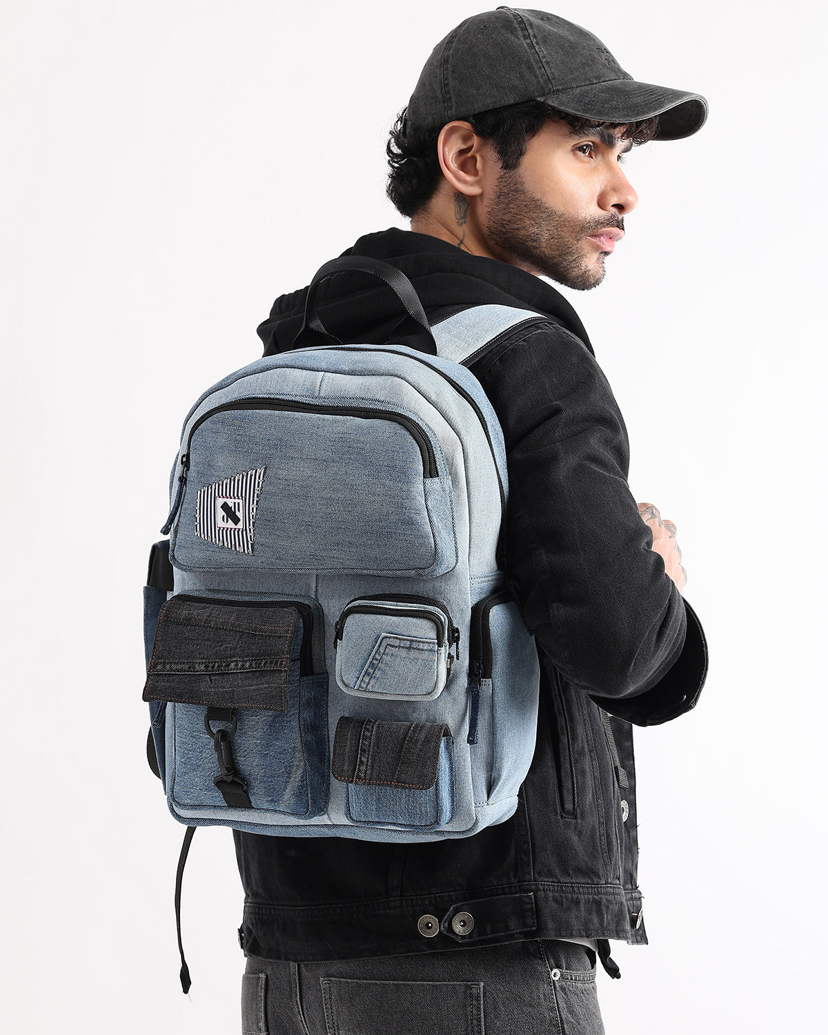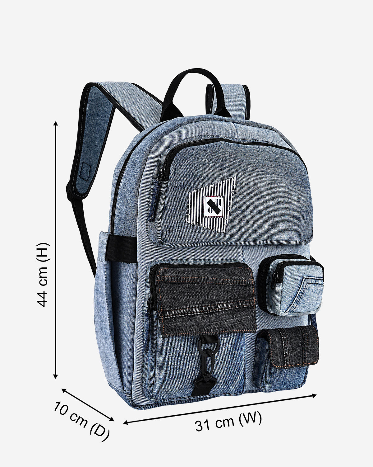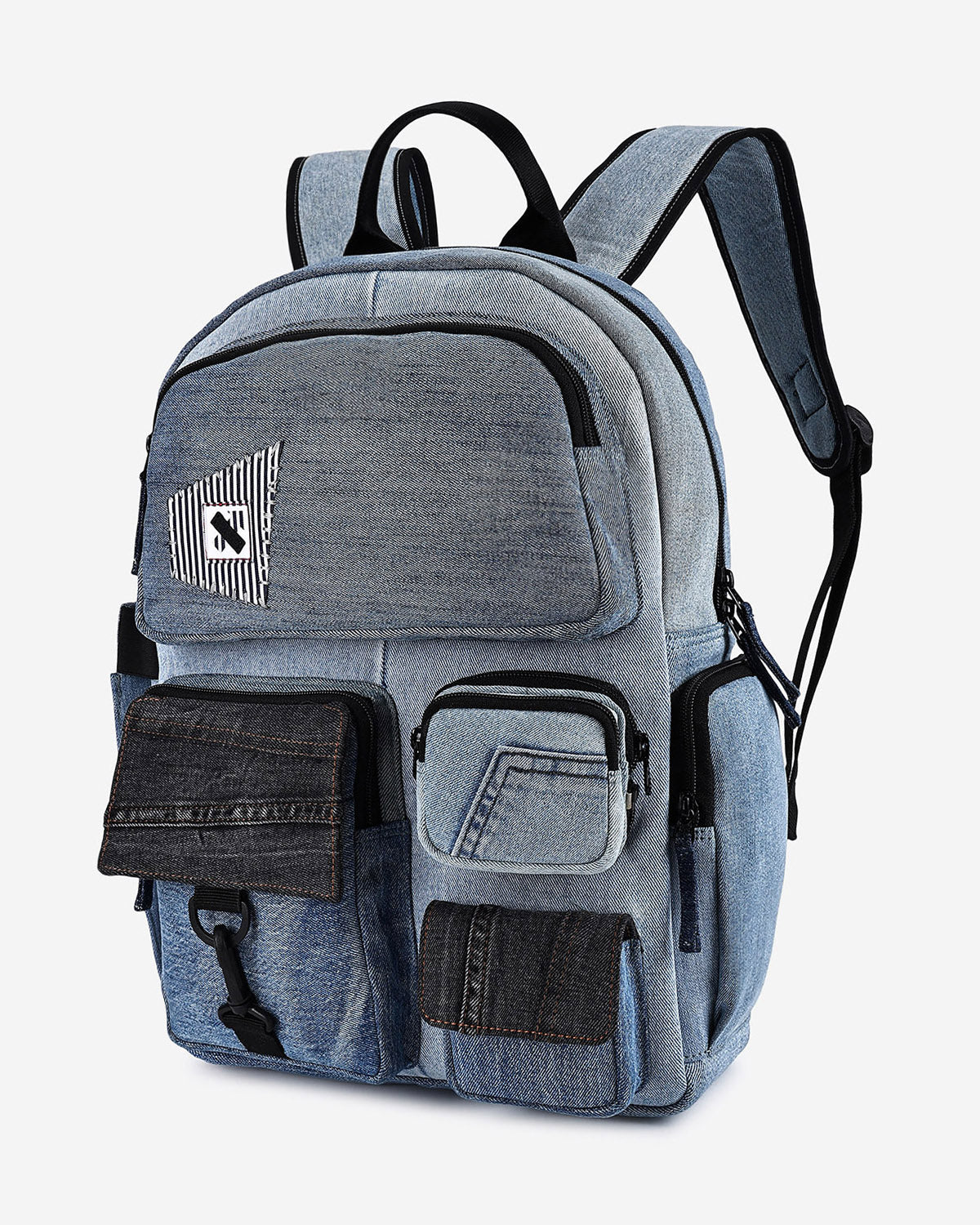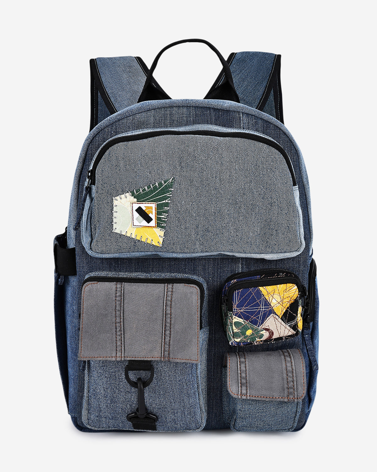POCKET CLUSTER BACKPACK - Denim + Fabric Shreds - 10 Styles Available